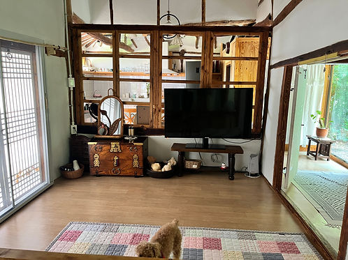 본채는 주방을 포함하여 4개의 개방된 공간으로 구성되어 있습니다. 친구들이나 가족 단위로 여행 오신 분들께 추천드립니다.